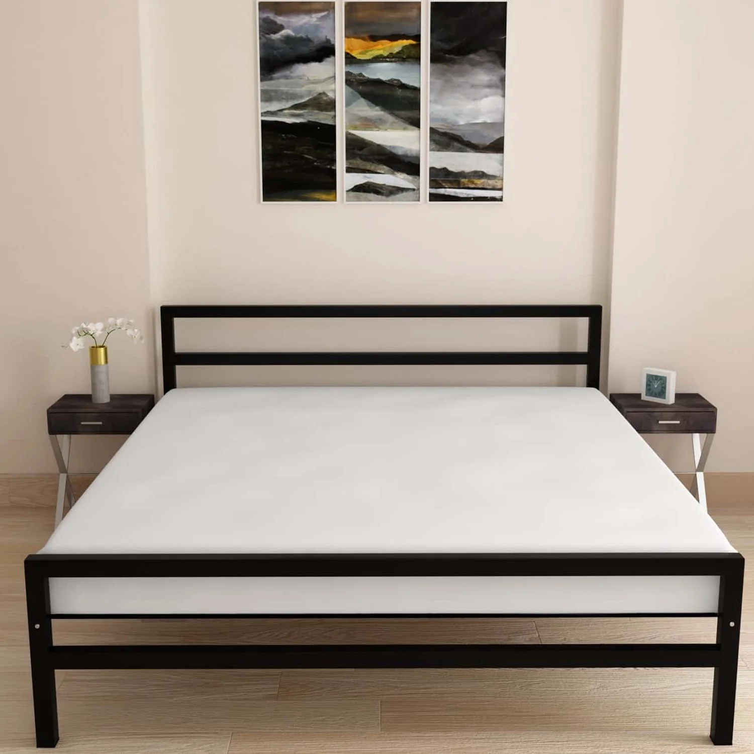 Striker Metal Bed (Black) + Lite Dual Comfort Mattress (Queen)